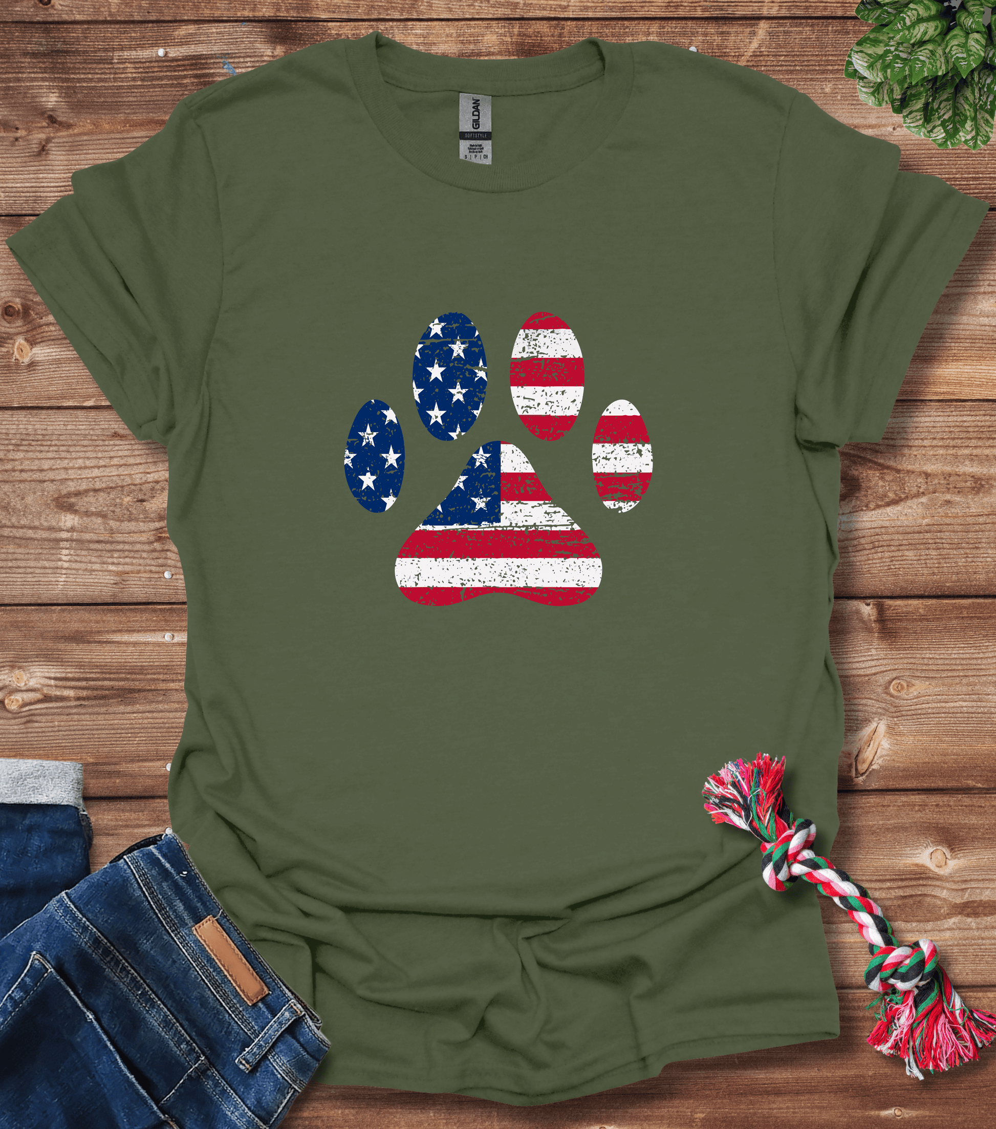American Flag Dog Paw T-Shirt