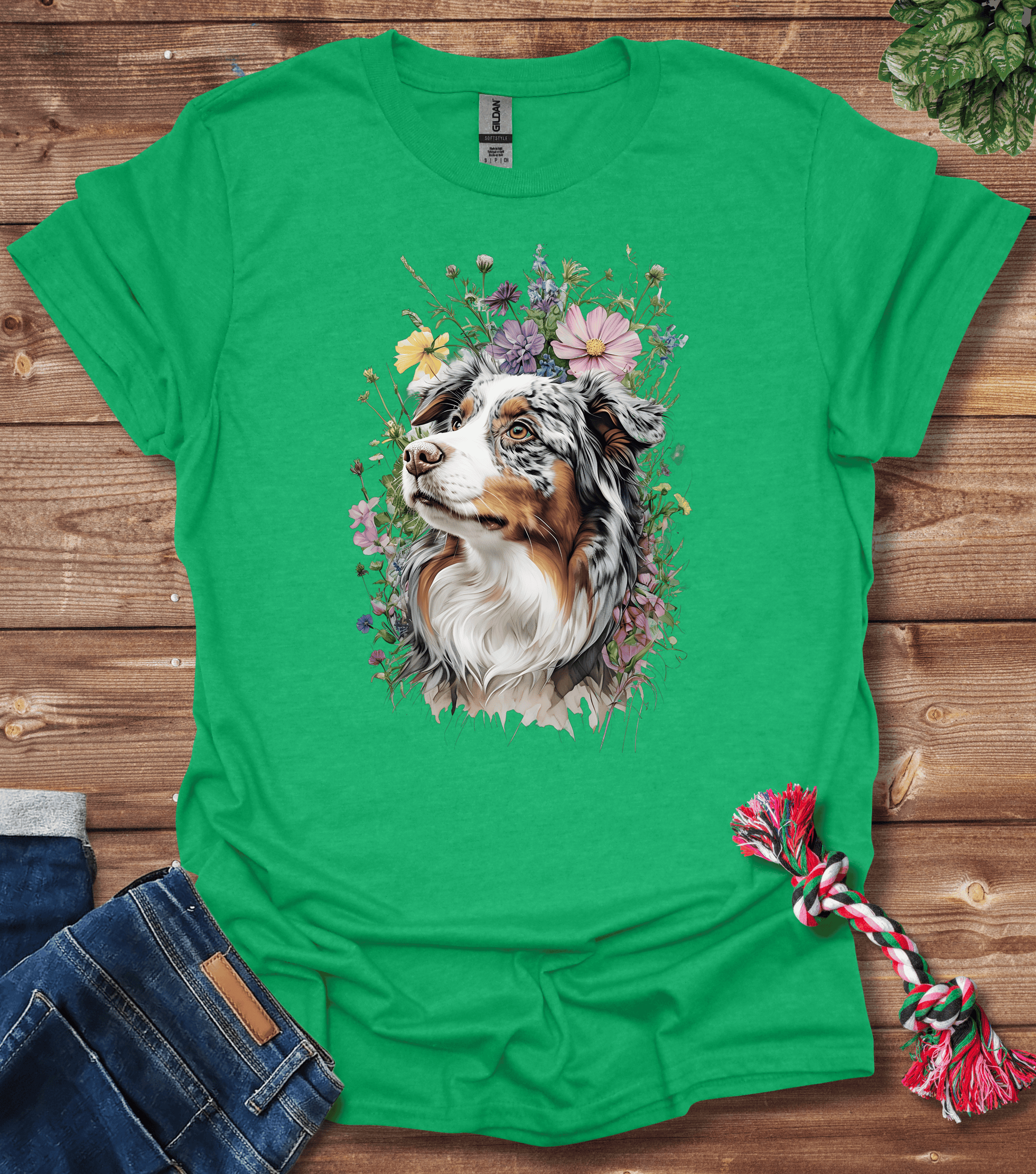 Australian Shepherd In Flowers T-Shirt