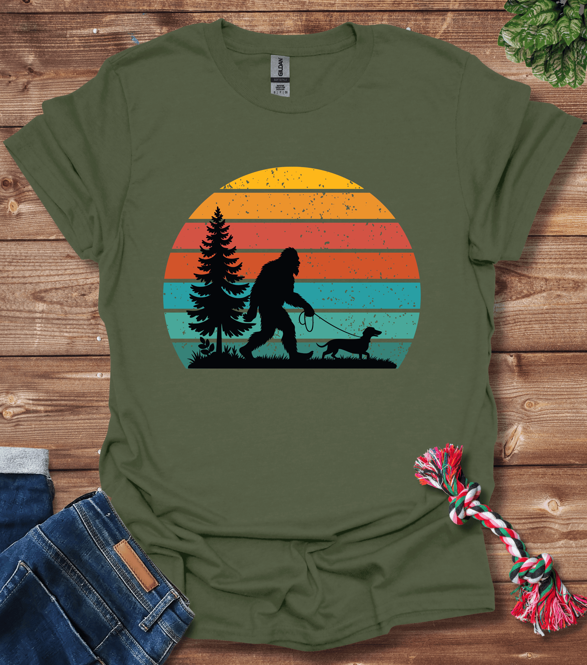 Bigfoot Walking A Dachshund T-Shirt