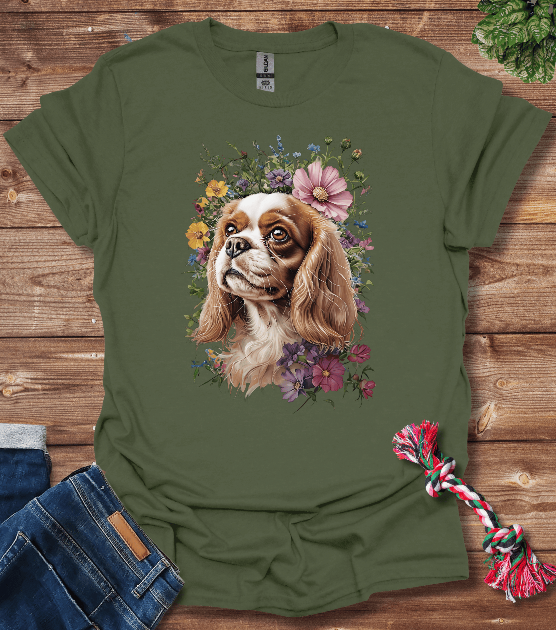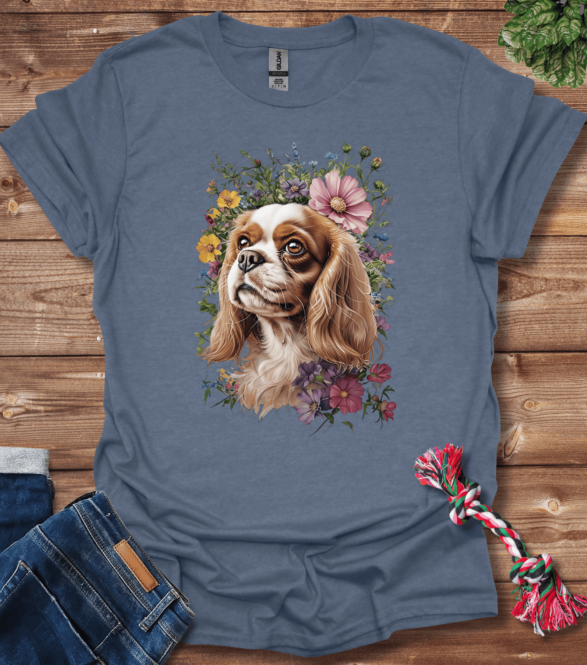 Cavalier King Charles Spaniel In Flowers T-Shirt